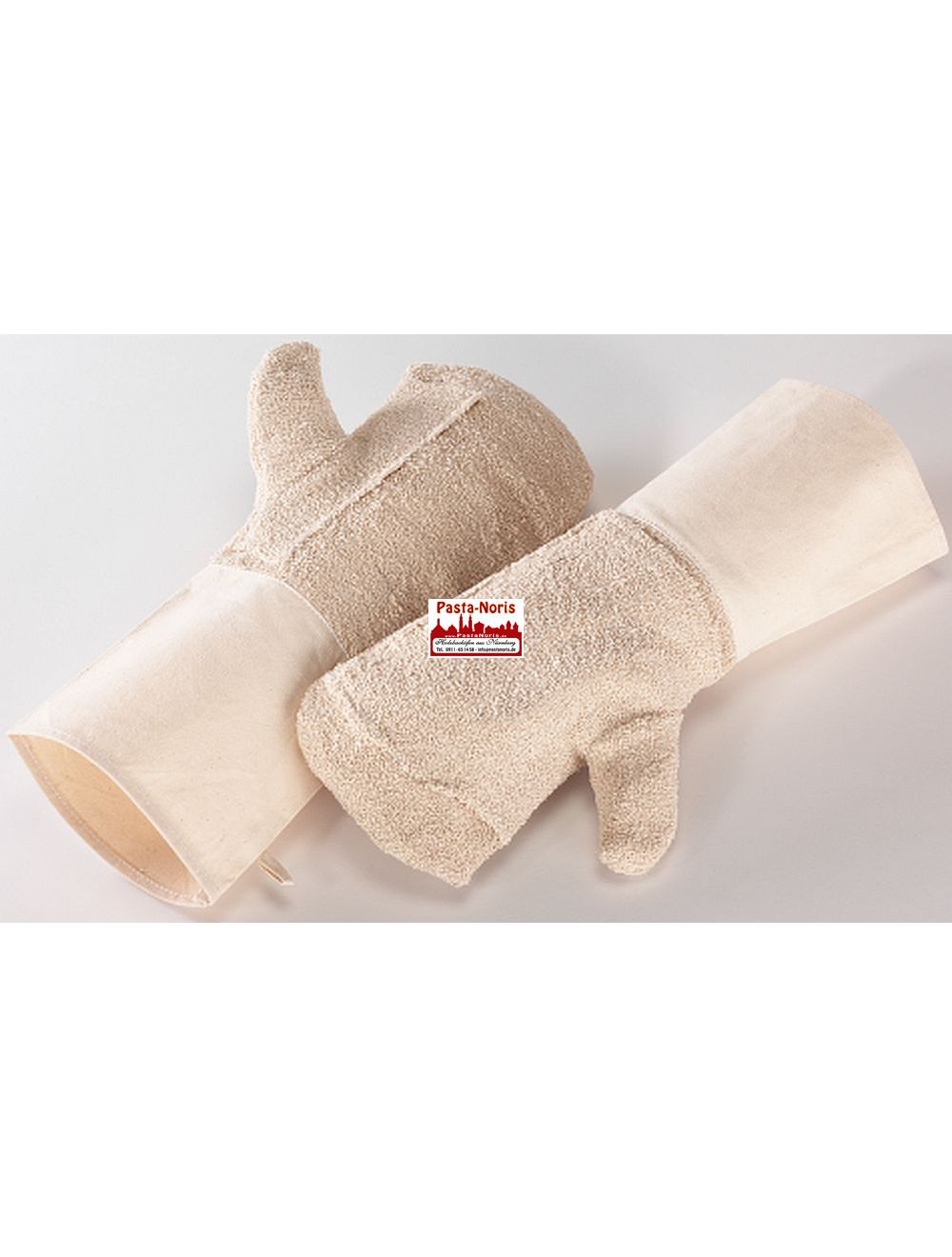 Backhandschuh mit Stülpe, Spezial-Baumwollgewebe, Farbe Natur, Innenhand und Daumen verstärkt, hitzebeständig bis + 200 °C, waschmaschinenfest bis + 40 °C, Gewicht: 330g.
